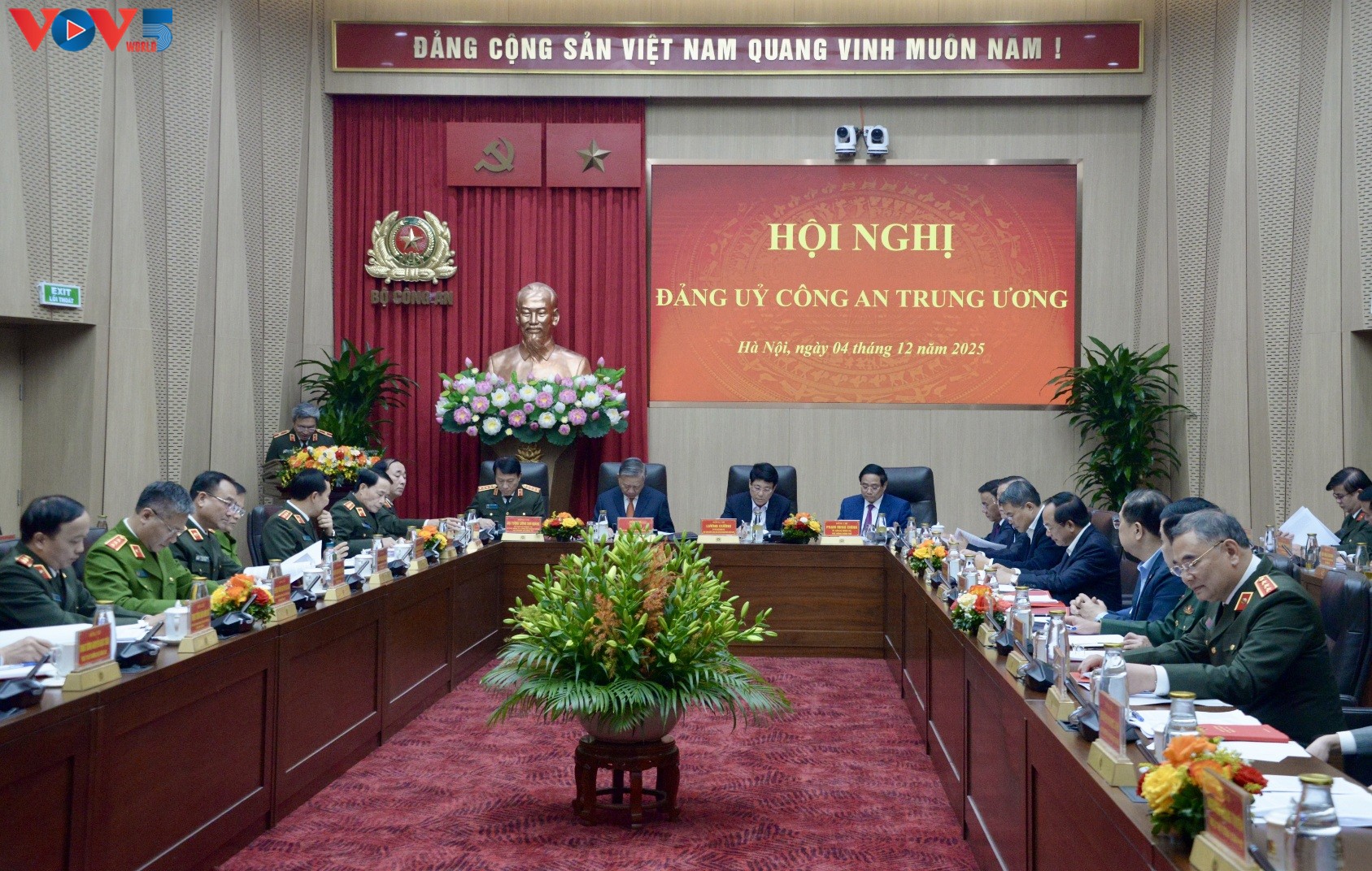 (VOVWORLD) - 12月4日下午在河内,中央公安党委召开2025年中央公安党委会议,讨论职权范围内的各项工作内容。越共中央总书记苏林出席会议并发表指导意见。国家主席梁强、政府总理范明政也出席会议。