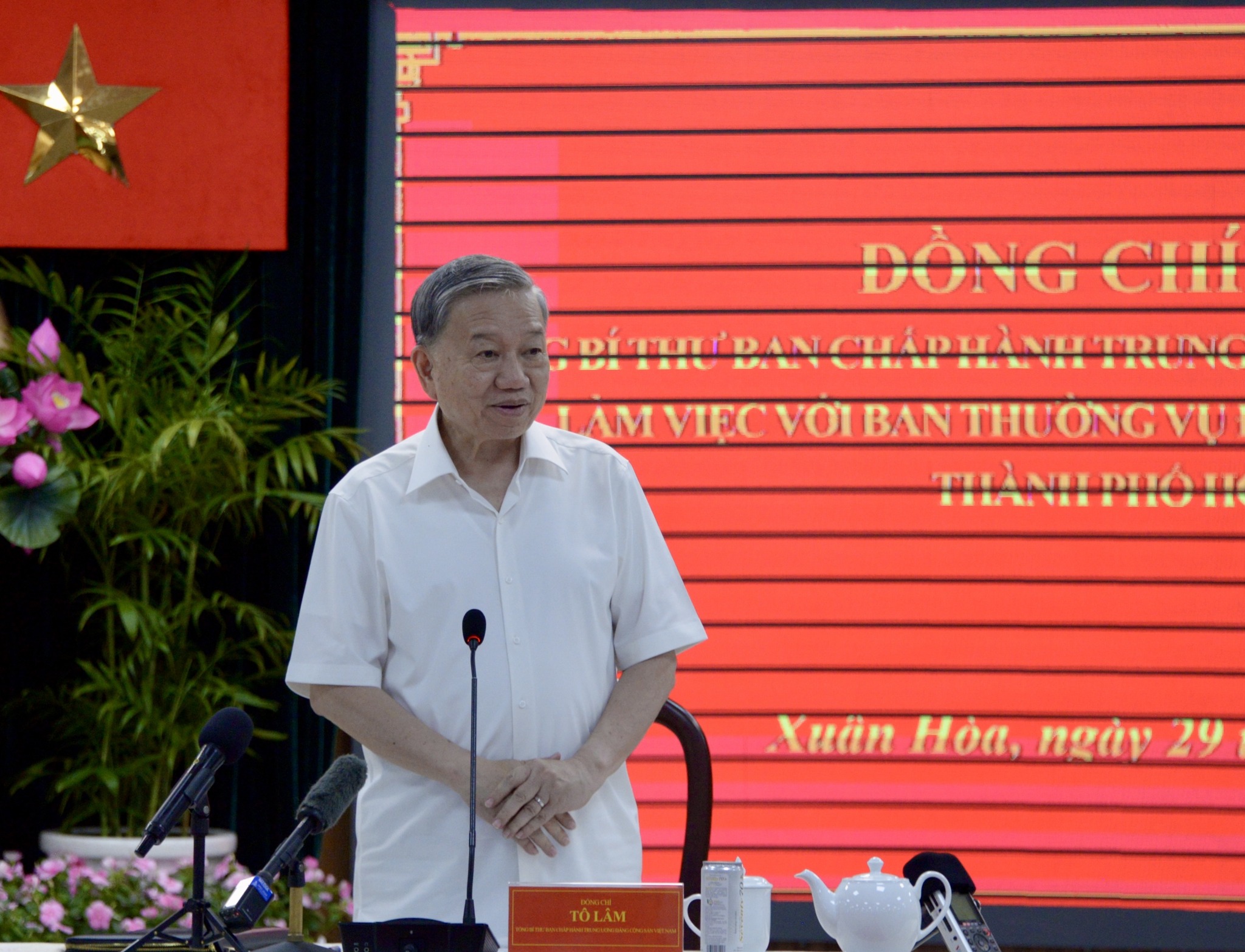 在胡志明市视察期间,6月29日下午,越共中央总书记苏林前往春和坊和新永禄乡实地考察两级地方政府模式筹备情况。