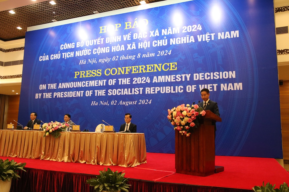 越南国家主席办公厅同公安部、外交部、最高人民法院2日在河内举行新闻发布会,公布2024年越南社会主义共和国特赦令。
