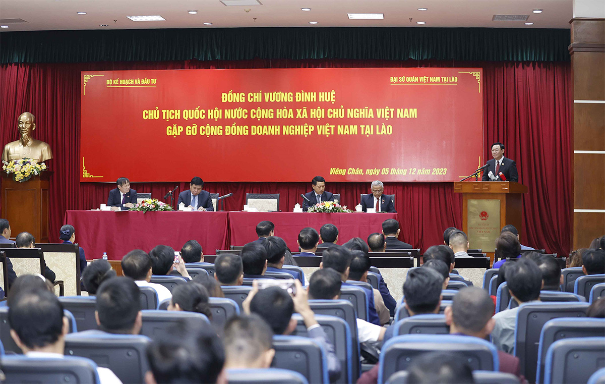 王庭惠表示,在去年的见面会上,企业提出的不少建议和意见已得到越老两国国会和政府关心解决,一些越南、老挝和第三方的大型合作项目继续开展,其中包包括越南牛奶公司与日本公司合作的奶牛饲养项目。一些大型风能,可再生能源项目得到推动投资。王庭惠主席表示,越南和老挝决心推动双边贸易发展,力争取得突破。