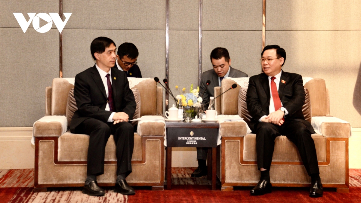 (VOVWORLD) - 对中国进行正式访问期间,越南国会主席王庭惠4月12日上午在云南昆明会见中国一些公司领导人。