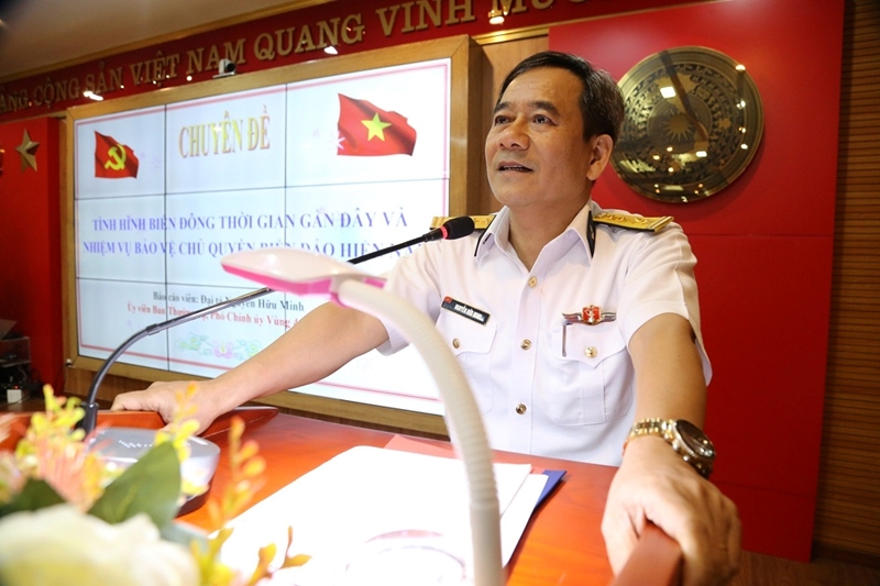 活动上,阮友明大校向报告员介绍东海最新局势及捍卫祖国海洋岛屿的观点和方案。