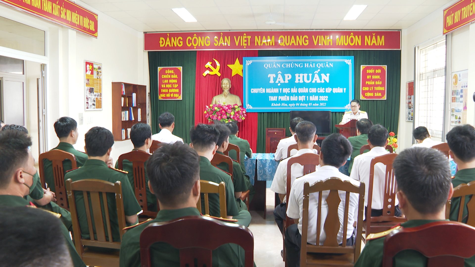(VOVWORLD) - 越南人民海军部队5 月 4 日在庆和省金兰湾海军第 4 区司令部为准备赴长沙群岛执行任务的部队举行海军医学业务集训活动。