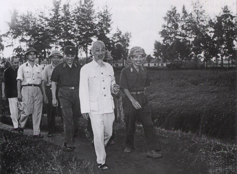 文进勇陪同胡志明主席视察一个炮兵单位 |