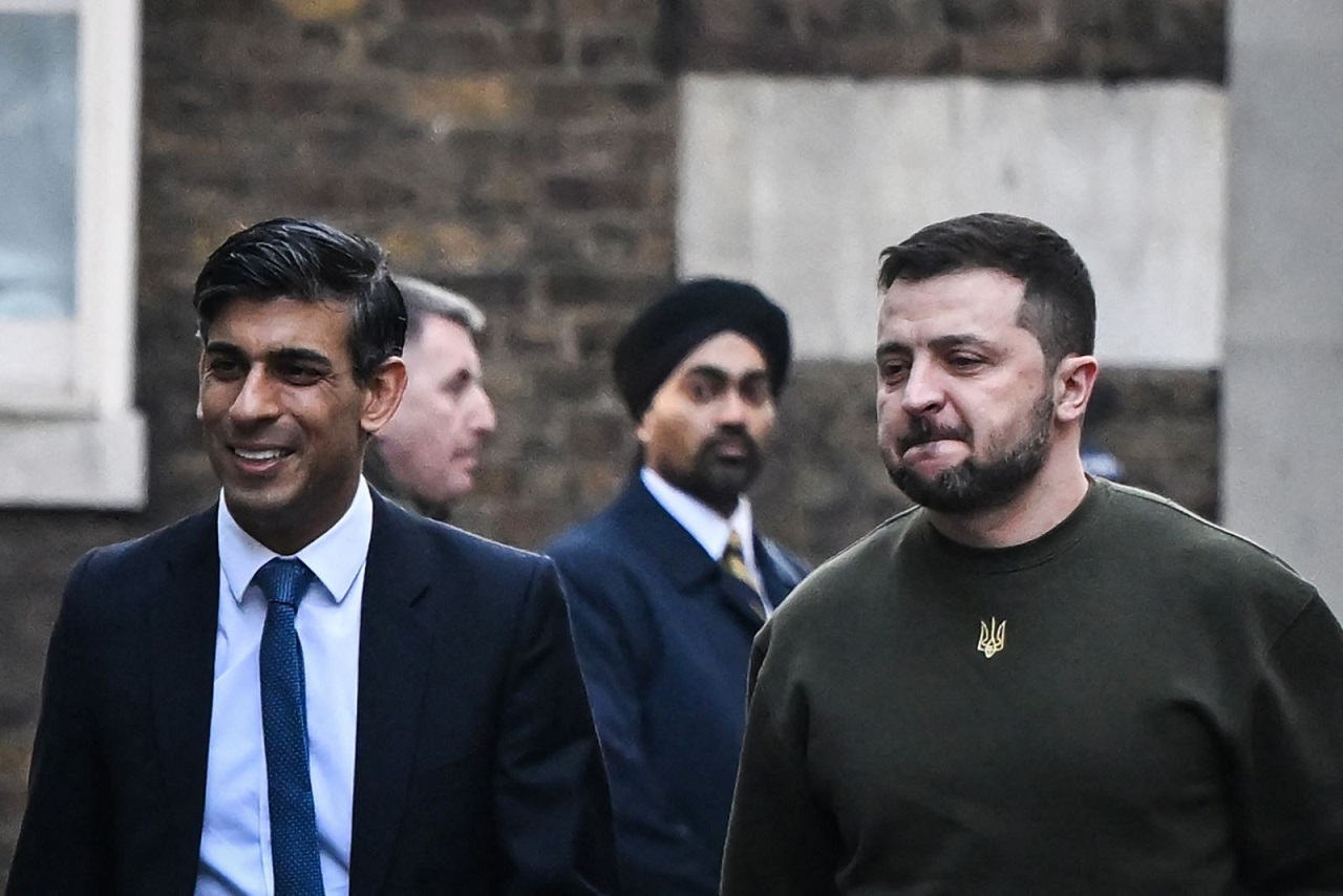 泽连斯基在社交媒体上发布他与英国首相苏纳克在斯坦斯特德机场的合影,并表示:“英国是最早向乌克兰提供援助的国家之一。 我今天在伦敦,亲自向英国人民的支持和里希·苏纳克首相的领导表示感谢。”