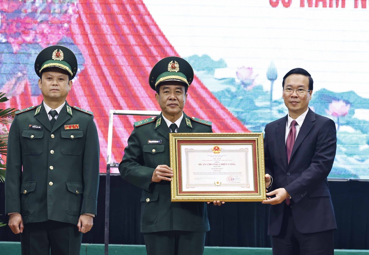 越南国家主席武文赏出席仪式并向边防部队授予二级战功勋章。武文赏强调,在65年建设、战斗和成长过程中,边防部队越过重重困难和挑战,出色完成在民族解放斗争、国家统一以及西南边境和北方边境保卫战争期间被交付的任务。在当前国家革新时期。边防部队积极参与建设、巩固基层政治系统,发展边境经济社会,建设强大的全民边防,为捍卫祖国每寸神圣土地做出贡献。