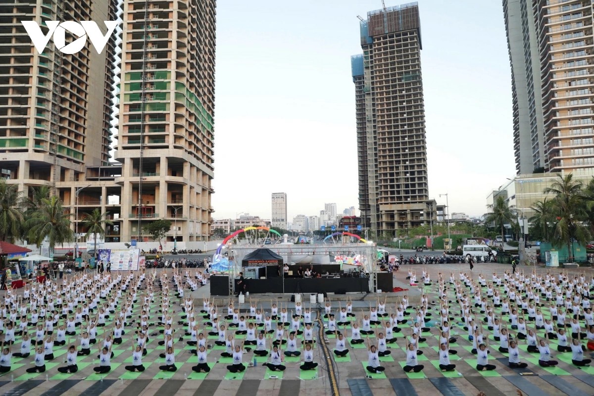 随后,6月23日晚,岘港市海州郡仙山体育馆举行了岘港国际瑜伽集体演练活动,活动主题为“瑜伽——为了一个世界,一个共同的健康”,吸引逾1000名市民与游客参与。活动由岘港市友好组织联合会、越印友好协会联合主办,获得印度驻越大使馆的协助与支持。