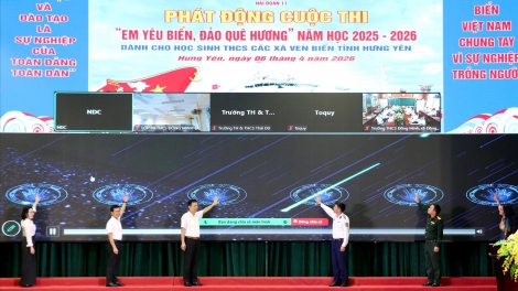 [VOVWORLD] - 4月6日在兴安省泰瑞乡,海警第一区司令部11旅与兴安省委宣教与民运部、教育培训厅配合举行面向全省沿海地区初中学生的2025-2026学年“我爱家乡海洋岛屿”知识竞赛启动仪式。