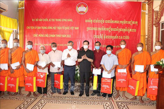 借此机会,越南祖国阵线中央委员会也向芹苴市爱国僧侣团结协会以及波诗松隆寺、当地和尚、尚座、大德、僧侣及一些优秀高棉族家庭赠送礼物。