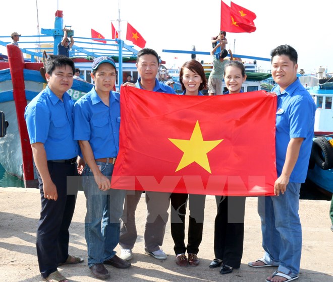 (VOVworld)- 平顺省富贵岛县的三清、五凤和龙海三个乡的渔民获赠300面国旗。3月12日,平顺省直属机关团组织举行了赠送仪式。
