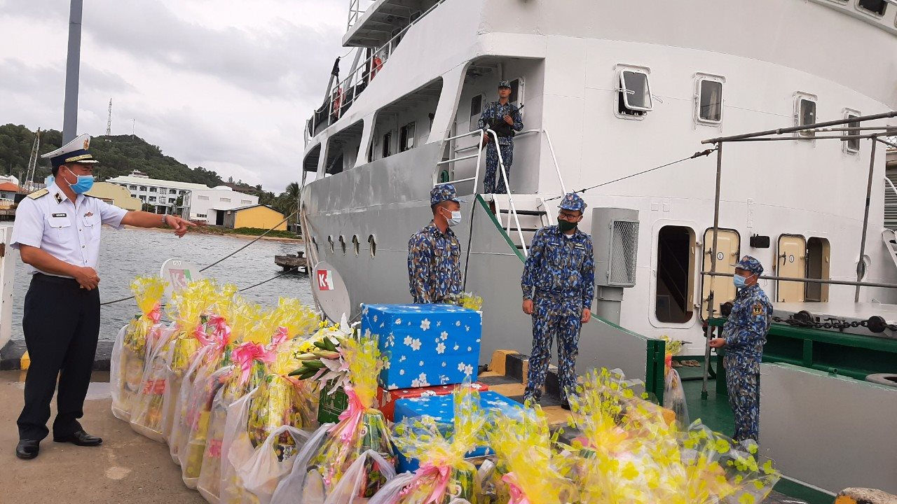 (VOVWORLD) - 越南海军第五区司令部最近与九龙江平原地区各省市及平阳省、同奈省组团探望西南海域各岛屿驻岛干部、战士和人民并赠送年礼。