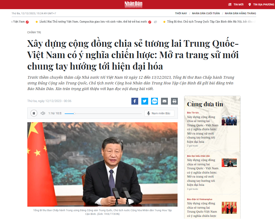 越南《人民报》发表习近平署名文章全文。图为截屏图。 |