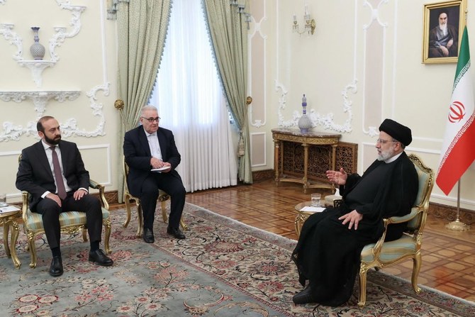 伊朗总统莱希(右)10月23日会见亚美尼亚外长。图片来源:AFP。 |
