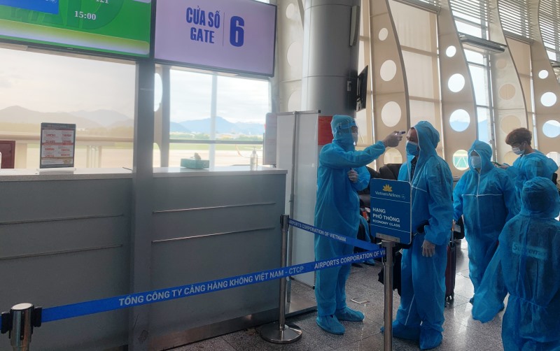 滞留岘港市的300人8月13日乘坐国家航空公司的航班抵达新山一国际机场。