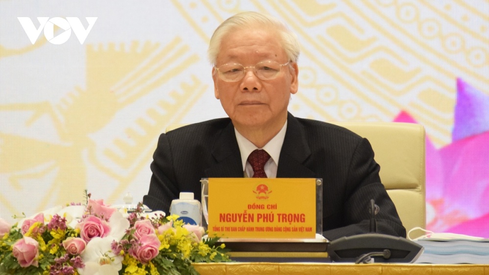 越共中央总书记阮富仲出席会议并发表重要讲话。阮富仲对各级党委、政府、团体组织、企业界、干部、党员、全国人民和全军指战员过去一年在经济、国防安全、社会民生、对外、融入国际等所有方面付出的努力和取得的结果予以肯定和赞扬。阮富仲强调,到目前为止,越南已经成功实施了疫苗战略,通过组织前所未有的大规模接种活动成为完成接种目标“后发先至”的国家。