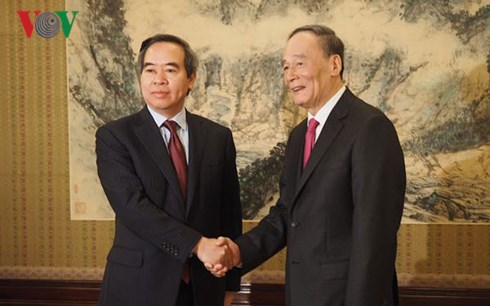 中国国家副主席王岐山17日在北京会见越共中央代表团时强调,中国党、政府和人民十分重视与越南的关系;希望双方继续加强高层互访,巩固政治互信,推动战略对接,加强民间交流,管控好分歧,推动两党和两国关系稳定与健康发展。