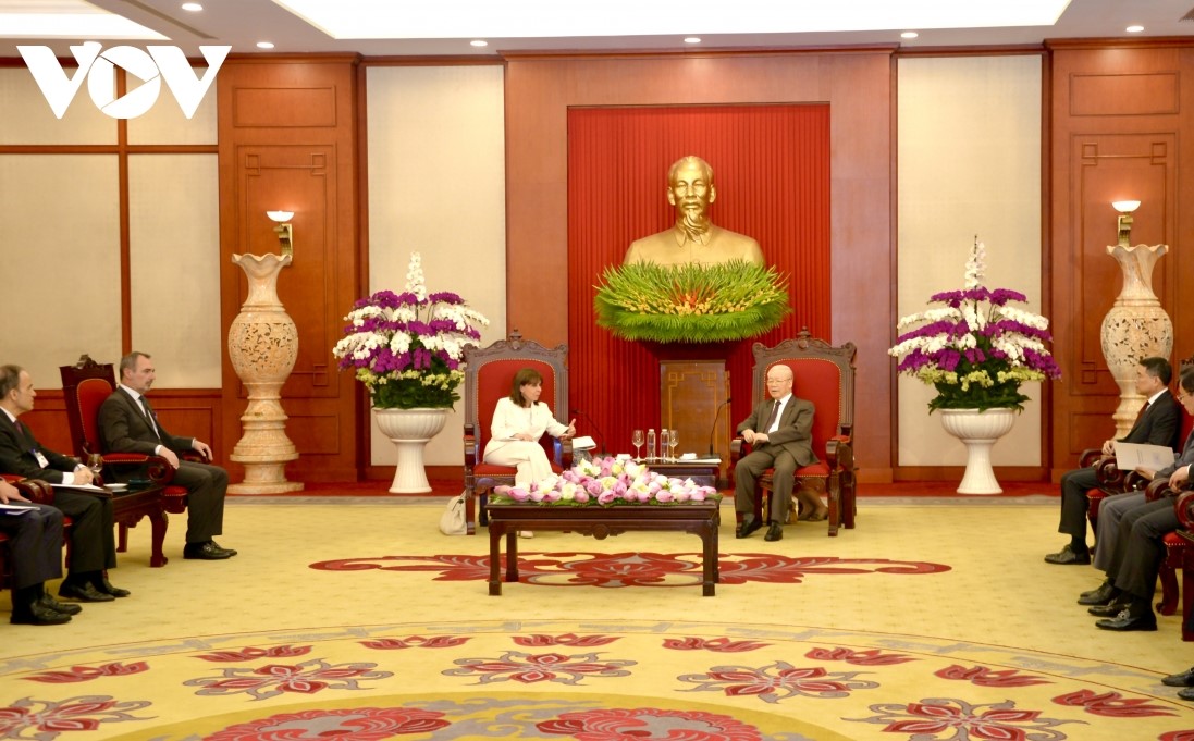 阮富仲在会见中高度评价卡特琳娜·萨克拉罗普卢与越南国家主席阮春福举行会谈所取得的结果。阮富仲表示相信此访将为两国关系发展打下的新里程碑,并强调越南高度重视与希腊建立传统友好关系,对越希关系取得的重要进展表示很高兴。