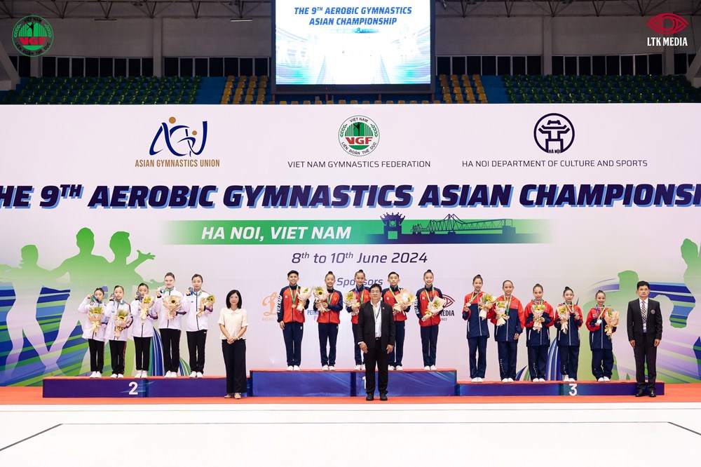 (VOVWORLD) -经过6月8日至10日三天的角逐,第九届亚洲健美操锦标赛于6月10日晚在河内落下帷幕。