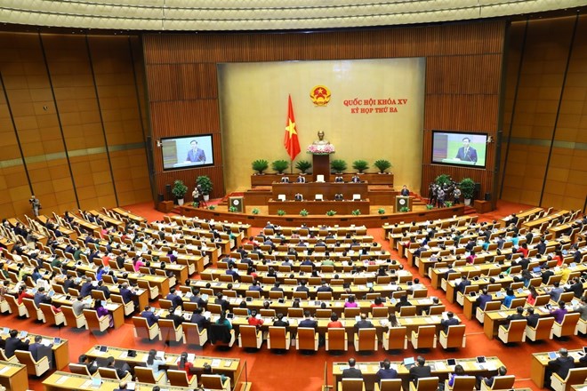 越南第十五届国会第三次会议5月23上午在河内正式开幕。越共中央总书记阮富仲、国家主席阮春福、政府总理范明政、国会主席王庭惠等出席会议。开幕式进行了广播、电视直播以便选民观看。