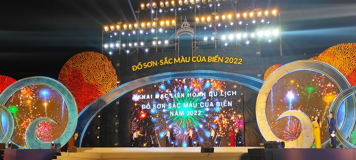 海防市涂山郡人民委员会4月30日晚在龙山国际旅游区举行《2022年海洋色彩》旅游节开幕式。开幕式上围绕《2022年海洋色彩》的艺术表演节目充分展示了当地居民对祖国海洋岛屿的自豪,同时也说明涂山一片土地的活力、生活节奏和特色文化。旅游节期间将举行6个主要活动,其中包括赛龙舟、步行街投入使用、《2022年海洋色彩》艺术表演、古董车陈列和游行、电子音乐节等。