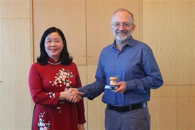 越共中央民运部部长裴氏明淮(左)与土耳其共产党总书记凯末尔·奥库扬(Kemal Okuyan) |