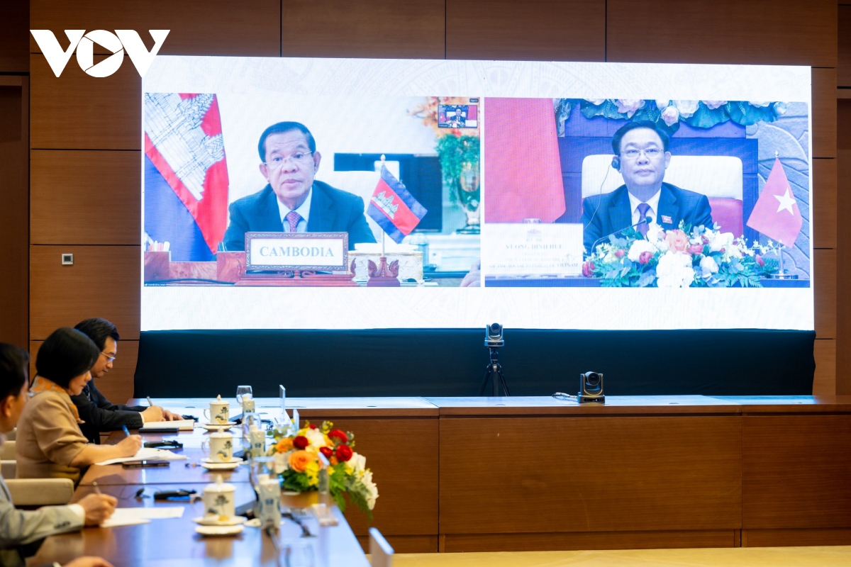 越南国会主席王庭惠5日在国会大厦与柬埔寨人民党主席、国家最高顾问委员会主席、柬埔寨参议院主席洪森亲王通电话。