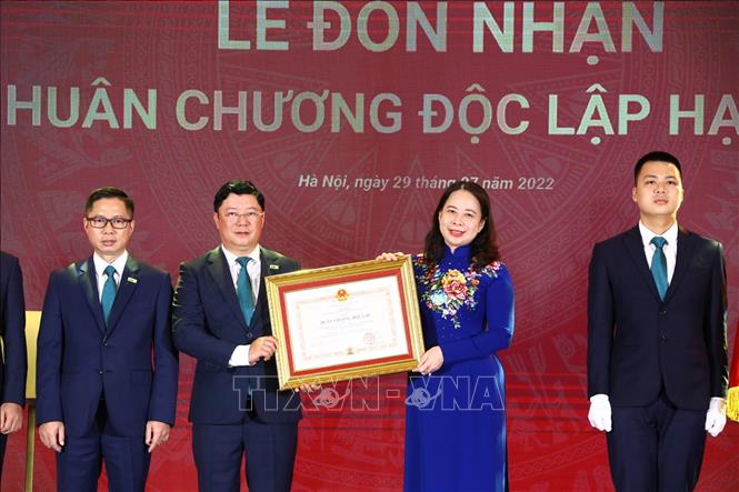 7月29日下午在河内,越南国家副主席、越共中央竞赛奖励委员会第一副主席武氏英春出席越南投资与发展银行第一号交易所荣获三级独立勋章颁授仪式。武氏英春代表党和国家向越南投资与发展银行第一号交易所颁发三级独立勋章。
