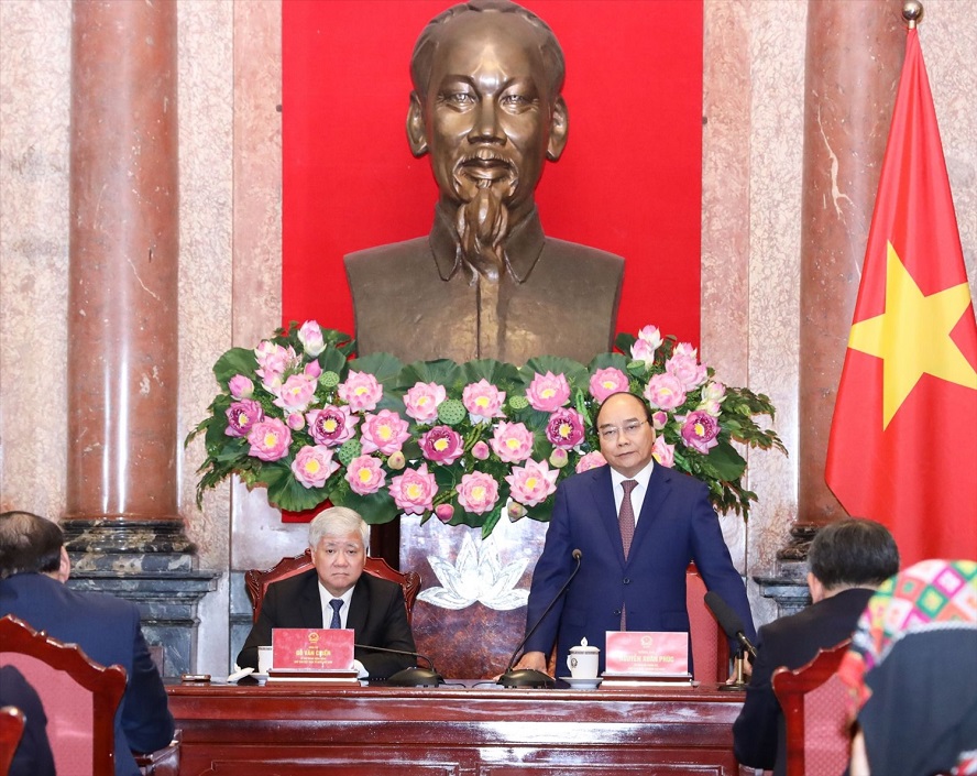 适值越南民族文化日,越南国家主席阮春福19日会见少数民族村长、长老、艺人等模范代表。 会见时,阮春福强调,民族工作,特别是民族传统文化弘扬和保护项目和政策日益得到关注,将各民族文化视为越南文化不可分割的一部分,不断提高各族群众的生活水平。