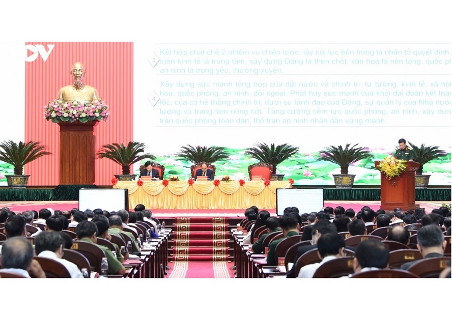 阮春福在会上发表总结性讲话时高度评价中央军委、中央各部门、机关集中明确总结提纲各项内容,并指出,关于新形势下保卫祖国战略的决议是个大主张,所以,不仅要按照规定进行总结,而且还要根据世界和地区形势新变化制定指导卫国工作的新决议。