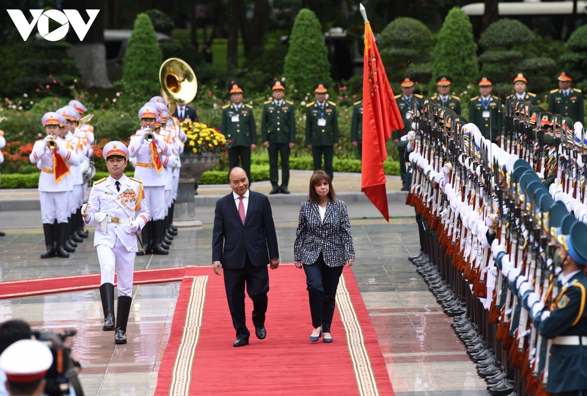 应越南国家主席阮春福的邀请,希腊总统萨克拉罗普卢于15日至19日对越南进行正式访问。16日,阮春福主持隆重仪式,欢迎希腊总统萨克拉罗普卢对越南进行正式访问。