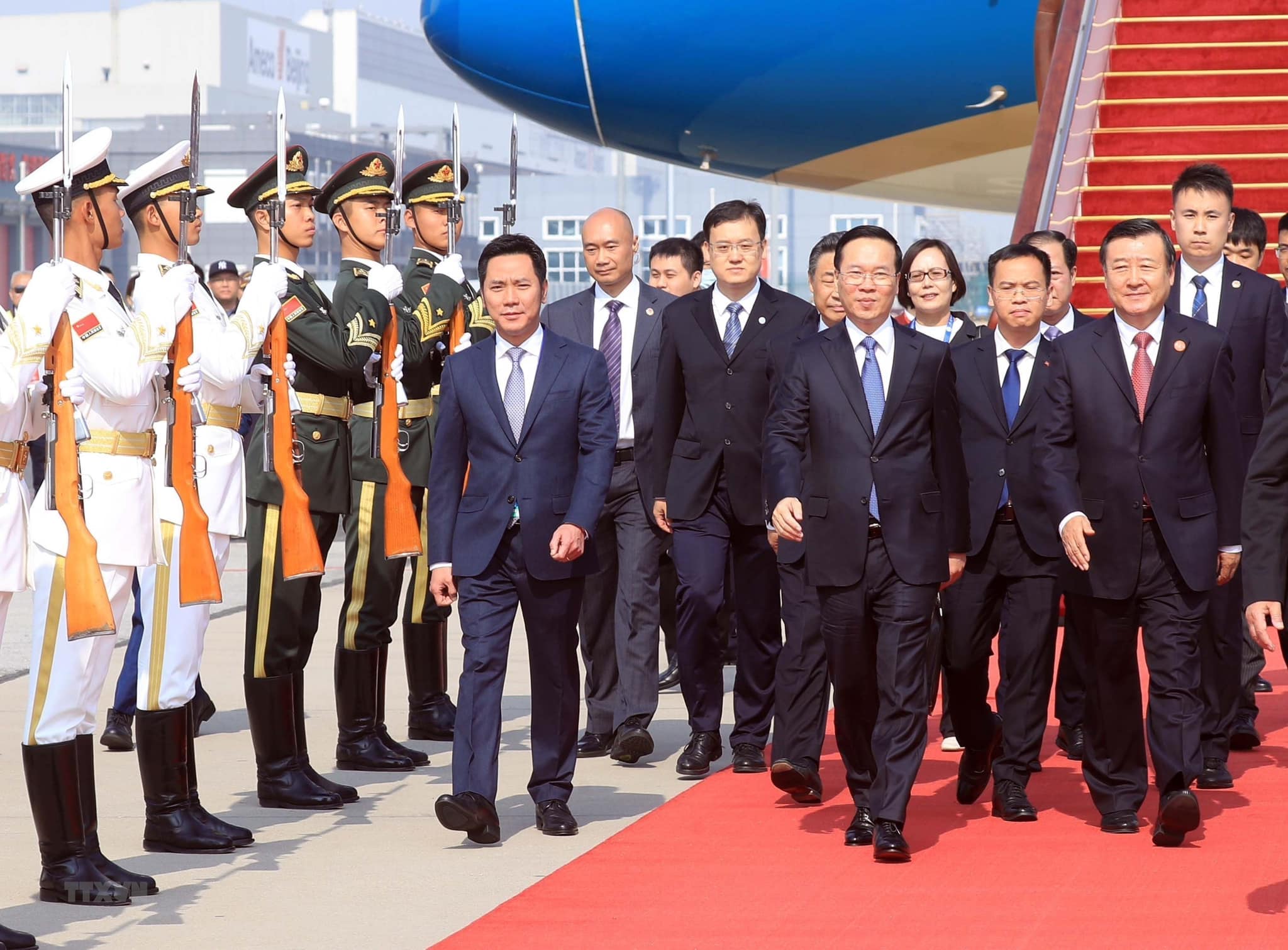VOVWORLD) - 据本台记者报道,当地时间17日中午,越南国家主席武文赏及其一行抵达北京,出席第三届“一带一路”国际合作高峰论坛。在机场迎接武文赏主席的有中国住房城乡建设部部长倪虹,中国驻越南大使熊波,越南驻华公使宁成功以及越南驻华大使馆干部人员。