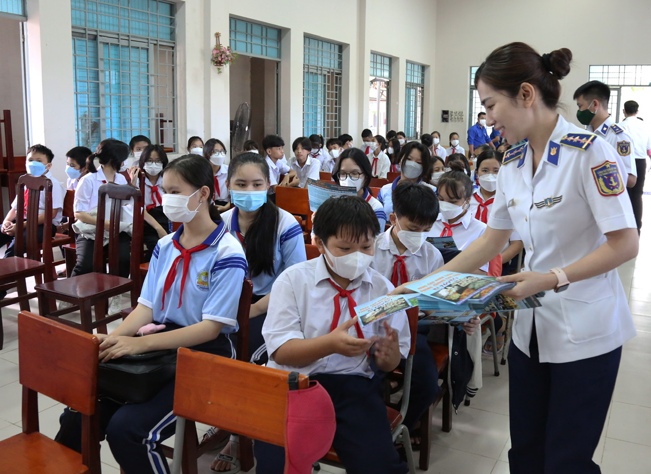 (VOVWORLD) - 越南海上警察第三区司令部6月7日举行活动,为巴地头顿省隆田县隆海镇3所初中的近1000名教师和学生宣传、介绍国家海洋岛屿当前情况及《海警法》内容。