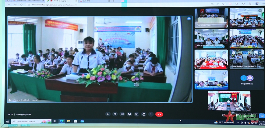 (VOVWORLD) - 越南海上警察第四区司令部5月16日举行坚江省周城县“我爱家乡海洋岛屿”知识竞赛启动仪式。周城县12所初中设分会场出席仪式。