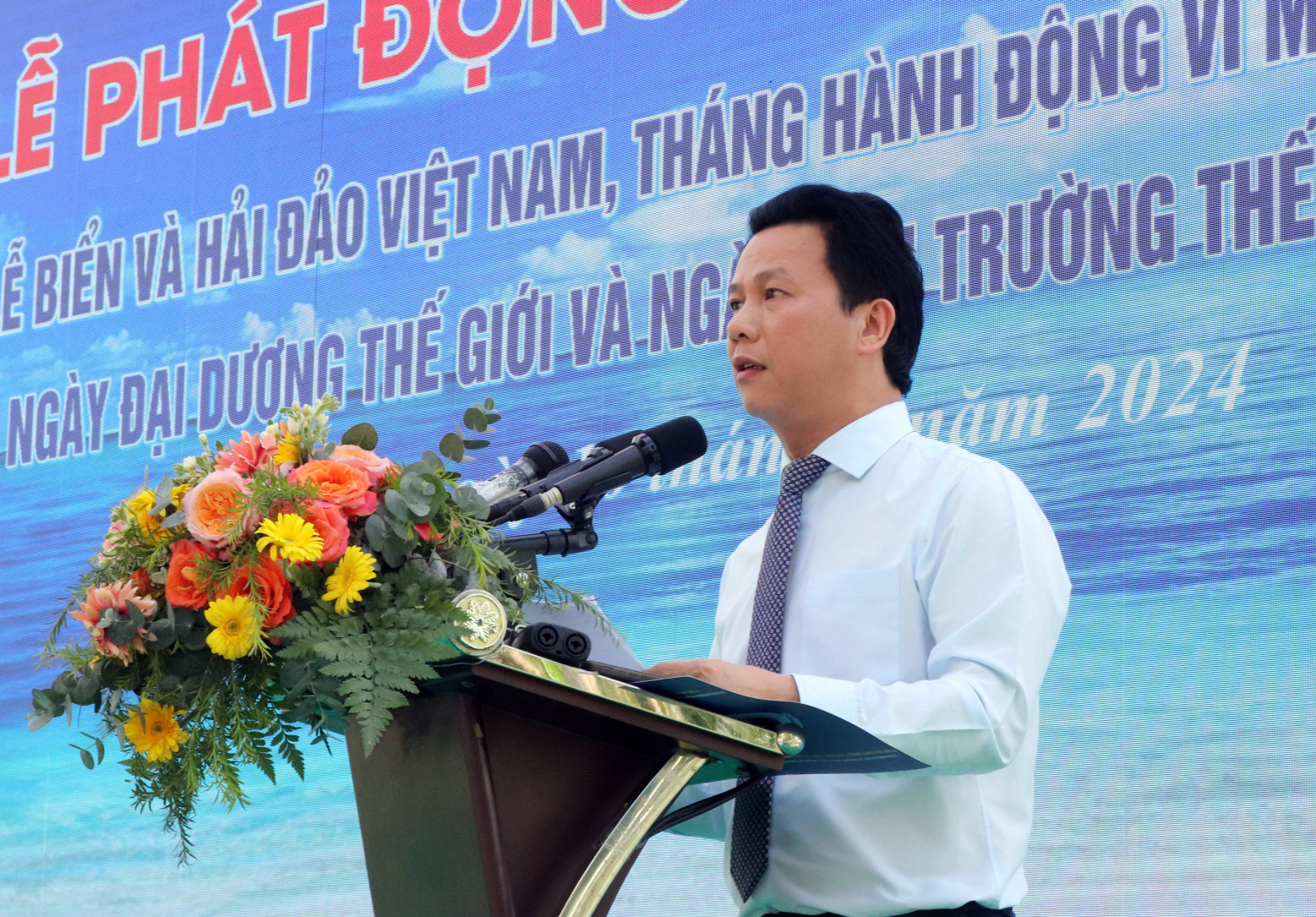 越南资源环境部部长邓国庆在仪式上致辞时表示,今年海洋岛屿周和环境行动月的主题为可持续管理和利用海洋空间。