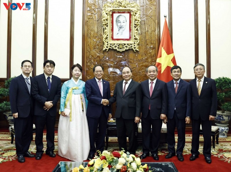 越南国家主席阮春福3日在河内会见了即将卸任前来辞行拜会的韩国驻越大使朴能运(Park Noh Wan)。
