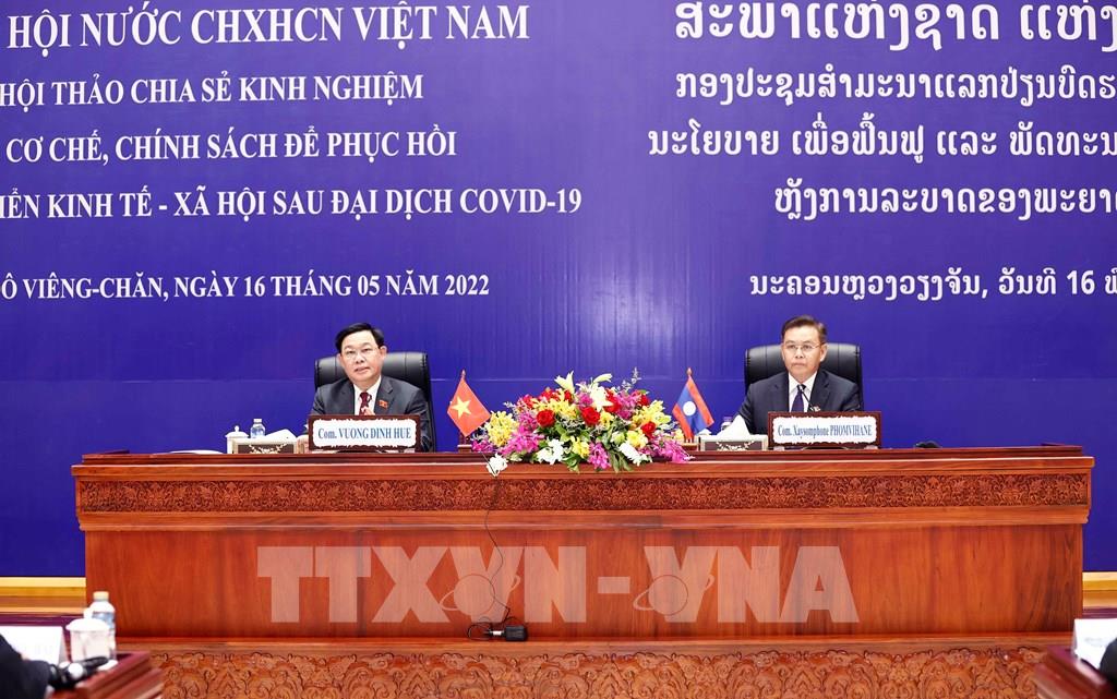 正对老挝进行正式访问的越南国会主席王庭惠16日与老挝国会主席赛宋蓬·丰威汉共同主持研讨会,就疫情后复苏和发展经济社会的政策和机制分享经验。
