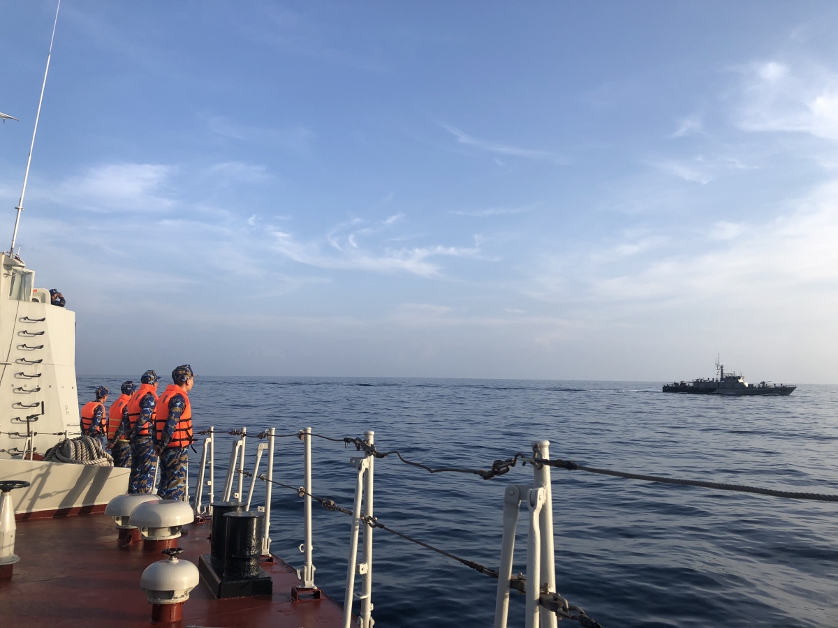 此前,越方编队4月19和20日两天与泰国皇家海军由521号和526号军舰组成的编队在两国毗邻海域共同开展海上联合巡逻。期间,两国海军编队举行了东盟各国海军舰船在海上相遇时的“打招呼”仪式(Hello ASEAN),同时互相通报相关信息和巡逻目标,共同阻止非法渔业活动,同时以海上旗帜信号和灯光信号执行西太平洋海军《海上意外相遇规则》(CUES)。