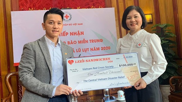 (VOVWORLD) -1月25日,越南红十字会接收法式越南三明治(Lee's Sandwiches)公司捐赠的10万美元援款,用于向越南中部灾区开展洪涝灾后重建工作提供帮助。