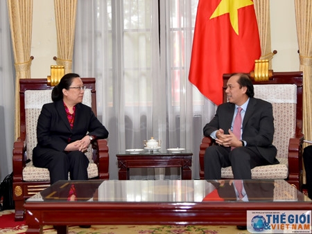(VOVworld)- 越南外交部副部长阮国勇3月27日在外交部总部会见中国驻岘港市总领事郗慧。