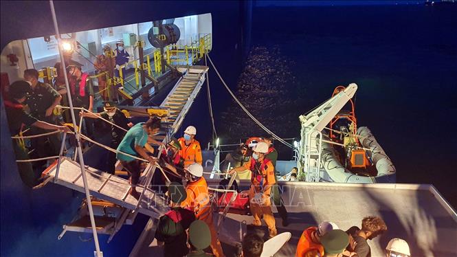 斯里兰卡公民从参加营救的一艘日本籍货轮迁到越南救护船 |