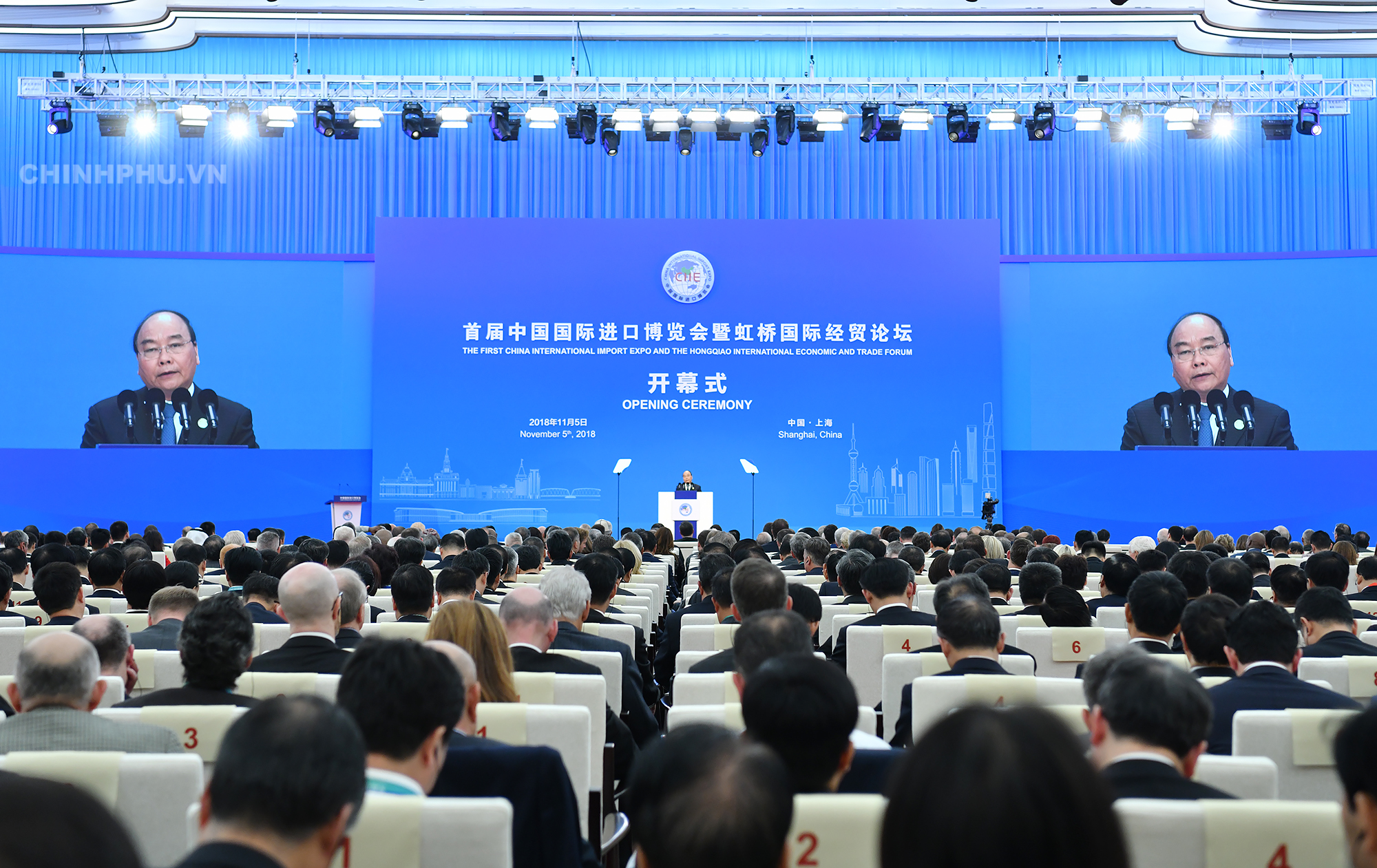 阮春福在开幕式上发表讲话时强调,越南一向重视发展与中国和各国的稳定关系,愿同中国和各国一道推动经贸合作可持续发展;支持以世贸组织为基础的开放、公平、透明、包容性和依据规则的多边贸易体系;支持贸易与投资自由化和便利化;愿同各国一道,努力有效应对全球性挑战,为世界和地区的和平、稳定、合作与发展做出积极贡献。