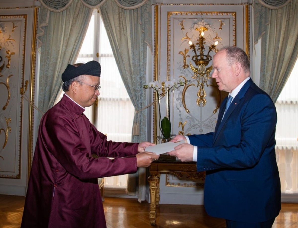 越南驻法国兼驻摩纳哥大使丁全胜日前向摩纳哥亲王阿尔贝二世递交国书。递交国书仪式后,阿尔贝二世亲切会见了丁全胜大使。