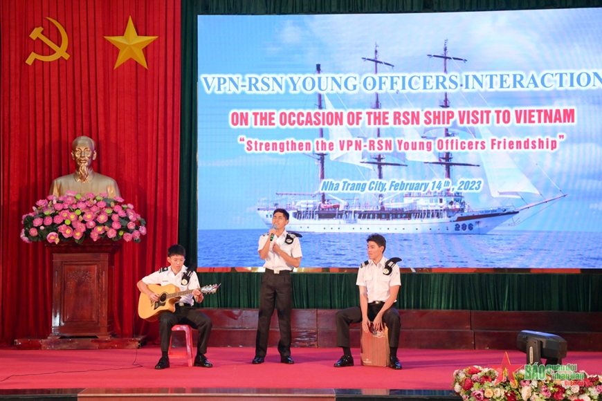 越南和新加坡海军青年官兵一起参加文艺交流活动。 |