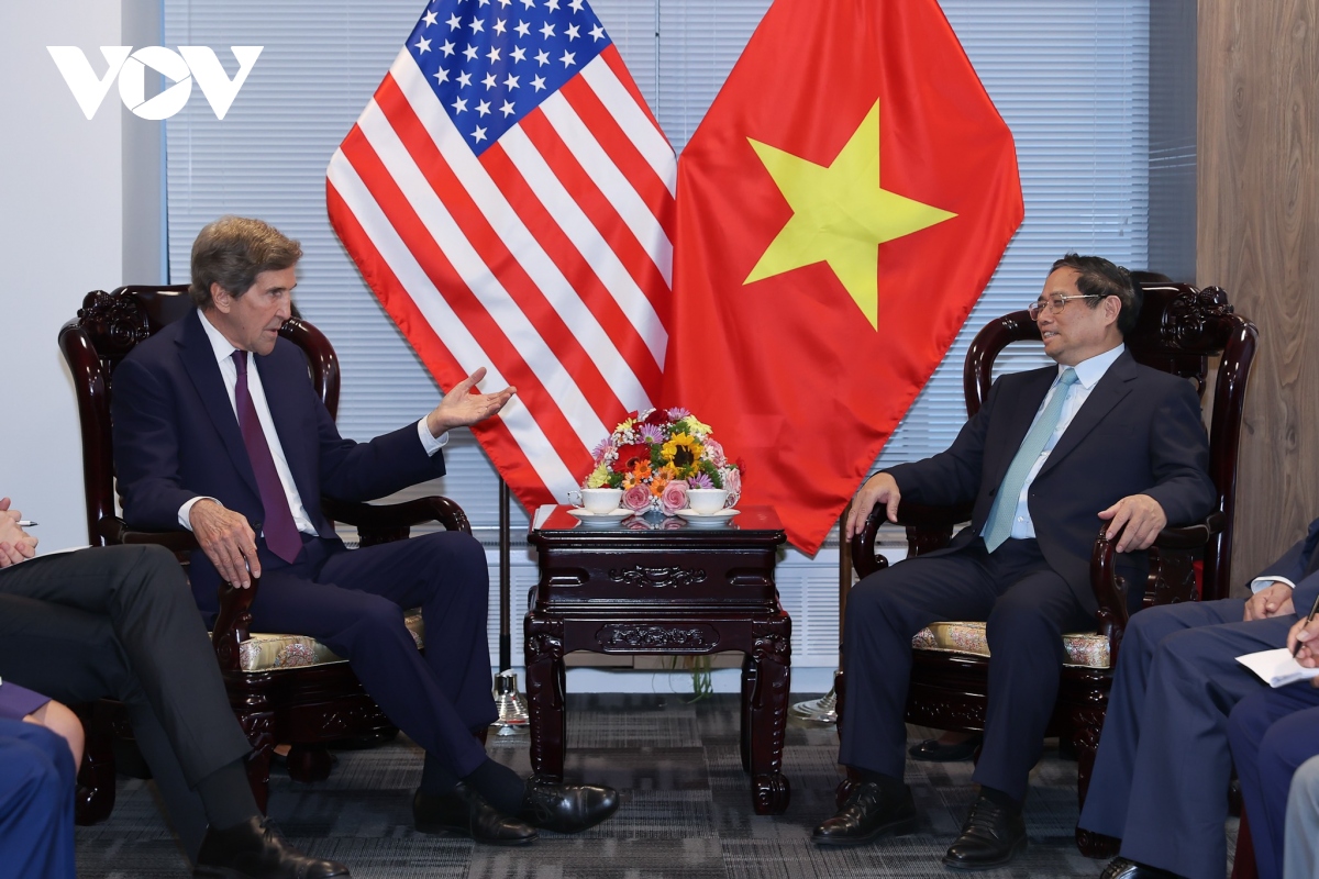 会见中,范明政与克里就落实两国在美国总统拜登访问越南期间达成的重要协议,特别是应对气候变化方面的协议的具体措施交换意见;建议美国继续帮助越南实现2050年净零排放承诺,以及实现公正能源转型伙伴关系(JETP)相关承诺,特别是帮助越南建设和发展可再生能源产业。