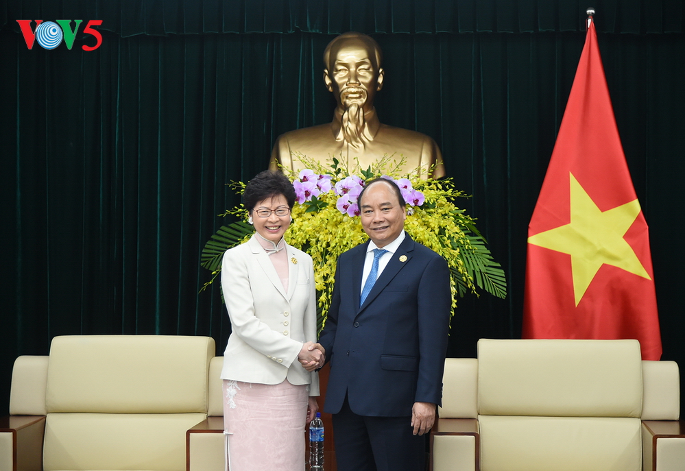 (VOVWORLD) - 会见时,阮春福强调,香港是越南头等重要的经贸、投资、旅游伙伴之一。 他建议香港鼓励有实力的企业扩大对越投资,特别是在电子零配件、加工、运输服务等领域。