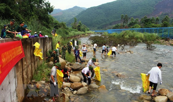 (VOVWORLD) - 越南广宁省平辽县横模口岸边防部队与横模和同文两乡政府和人民同中国防城港市峒中镇政府和人民联合开展界河卫生清理工作。