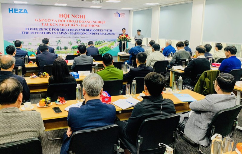 海防市经济区管委会主任黎忠坚在活动上与企业代表交谈,承诺为企业、投资者解决其在实施投资项目过程中遇到的困难。海防市今后将继续实施日本工业区二期项目,以继续吸引投资者,特别是日本投资者。