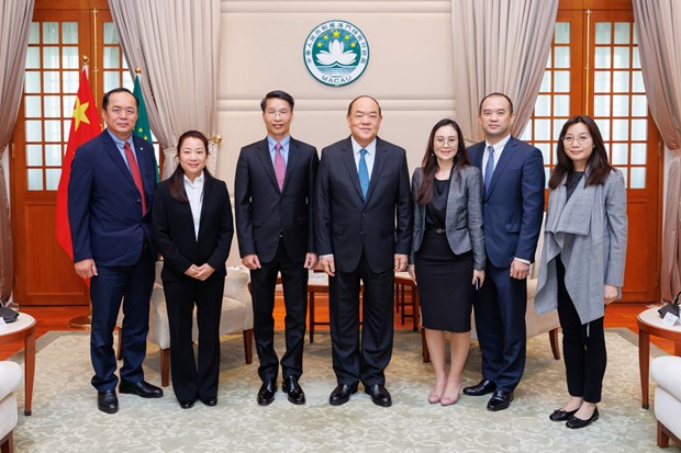 在澳门政府总部,澳门特别行政区行政长官贺一诚会见并与范平谭就中国澳门和越南关系进行了讨论。贺一诚高度评价越南与澳门在多个领域的合作关系,强调越南劳动者具备良好技能、努力工作并为澳门经济做出积极贡献,同时也积极参与当地文化活动。