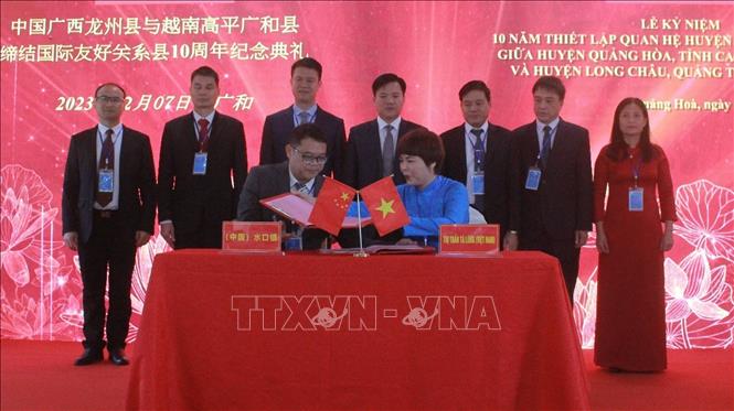 越南高平省广和县与中国广西龙州县接壤边界全长2万2707公里。2013年9月4日,龙州县与复和县(今广和县)签署了关于建立国际友好县关系的框架协议。这是越南与中国缔结友好县关系的首对边境县份。
