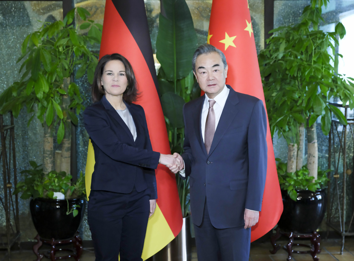 据本台常驻北京记者报道,中共中央政治局委员、中央外办主任王毅15日在北京会见德国外交部长安娜莱娜·贝尔伯克(Annalena Baerbock)时强调两国的共同利益,并呼吁德国支持中国和平统一事业。王毅强调,要坚定维护联合国权威和二战后形成的国际秩序。